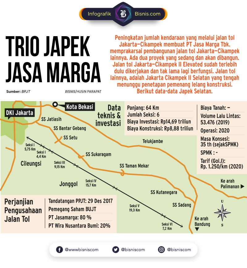 Bisnis.com, JAKARTA — PT Jasamarga Japek Selatan akan memulai pembangunan jalan tol Jakar...